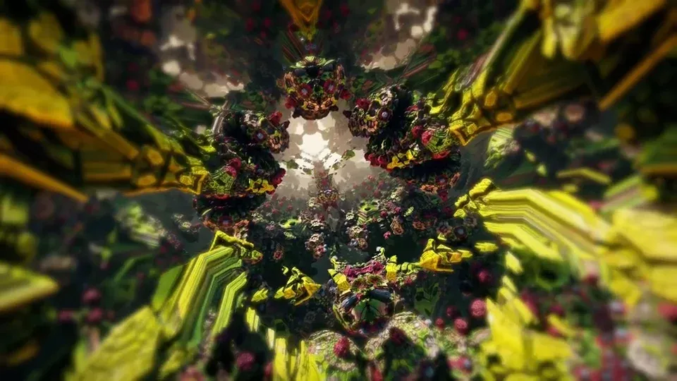 fractal3danimationgenerativejourneydestinyyellowgreenearthabstract